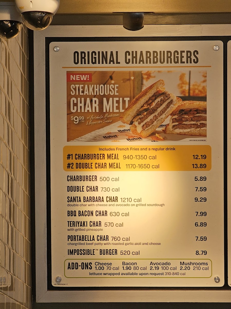 Welcome to Habit Burger & Grill - Encinitas, where flavor meets convenience in a relaxed setting! Nestled at 1446 Encinitas Blvd, this burger joint offers a fantastic menu that highlights quality ingredients and mouthwatering flavors. Start with the Grilled Chicken Meal, featuring a chargrilled chicken breast topped with melted cheese, crisp lettuce, and your choice of BBQ or teriyaki sauce, all served with fries and a drink for just $19.24. For something heartier, try the Chicken Club Meal—a toasted sourdough delight loaded with bacon and avocado.